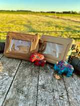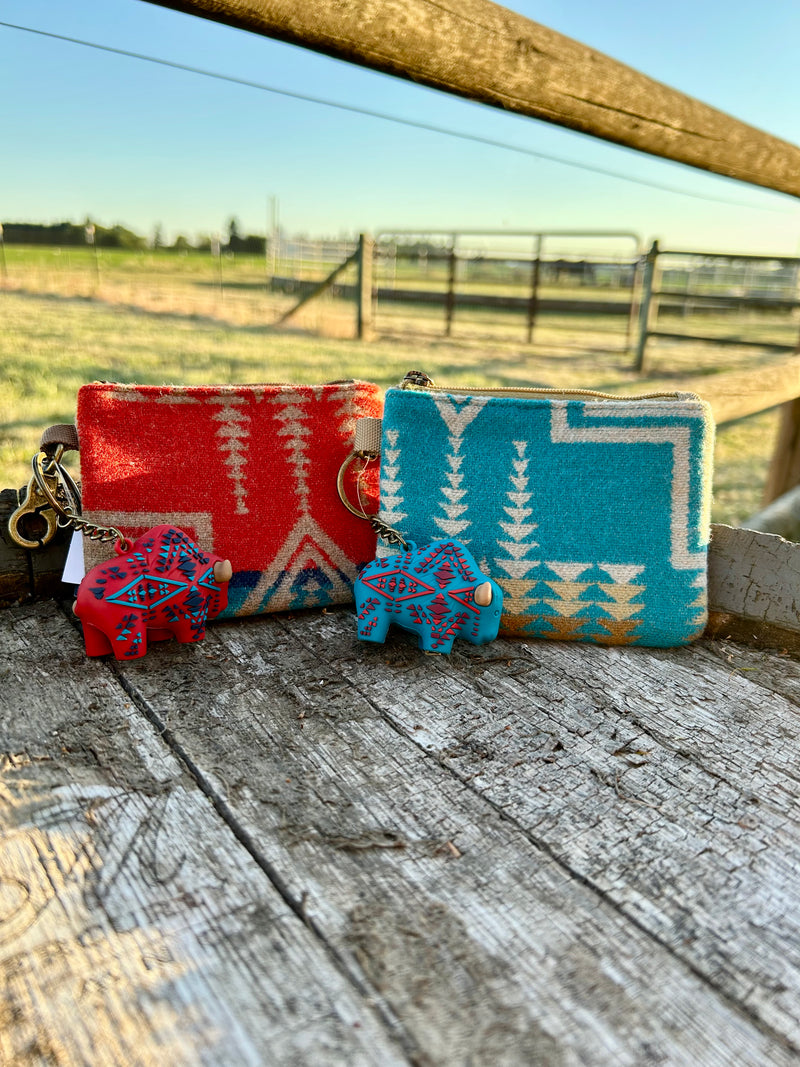These great pieces, out of the Traditions wool collection, are useful for a wallet, coin purse or id pouch. Choose from two new Harding pattern colors: bold turquoise and chili red. 100% virgin wool fabric, contrast lining in cotton canvas, gold toned hardware. Zipper closure. 5 x 3.75