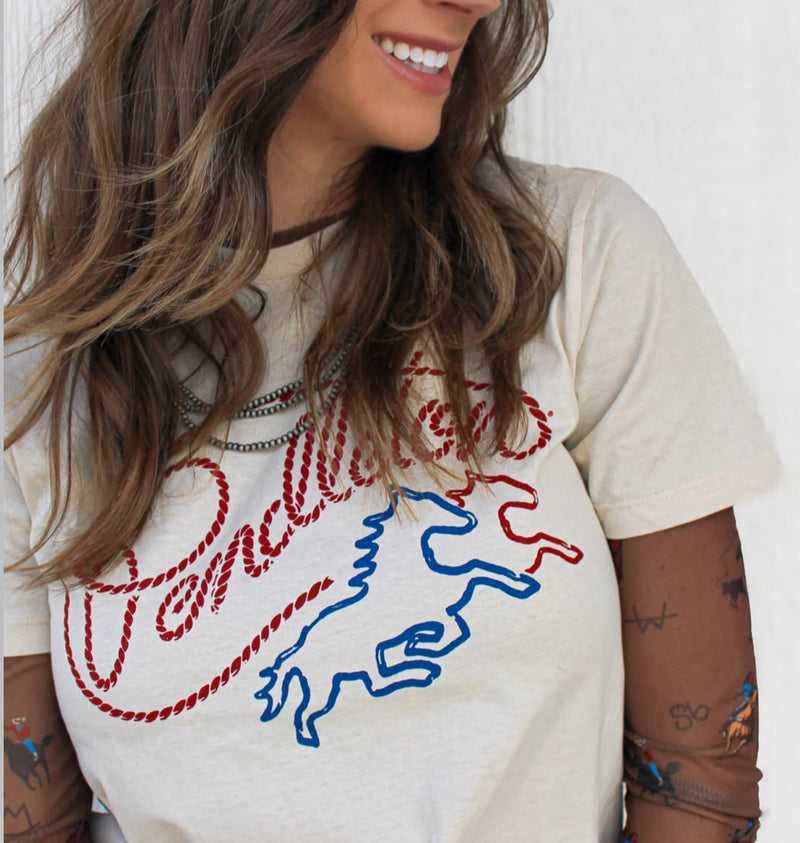 The cotton Pendleton graphic tees are soft, comfy and versatile! Even better when there are horses, lariats and of course it says Pendleton!